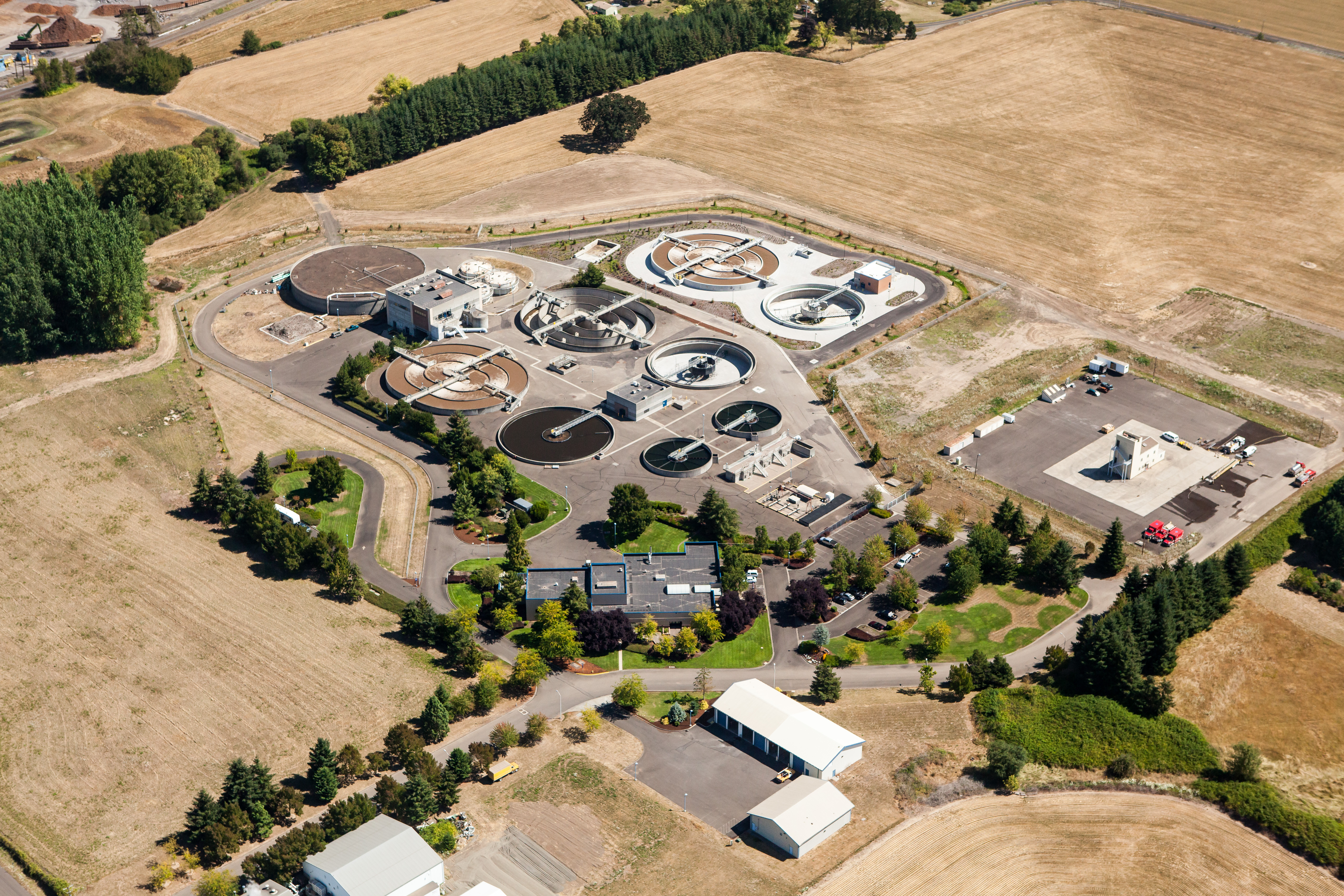 This expansion of the Water Reclamation Facility in McMinnville, Oregon included construction of a new aeration basin, new secondary clarifier, new mixed liquor splitter box and new return sludge pump station. Modifications were made to the existing mixed liquor splitter box, return sludge pump station, headworks and effluent filter inlet channels. Coatings were applied to two existing secondary clarifiers. Other improvements including HVAC and plumbing elements, constructing site roadways, permeable pavers, site grading, piping, and landscaping were also completed. Furnishing and installing related equipment, storm sewers, electrical, and I&C components completed the project. This project was named 2016 Project of the Year by the Oregon Chapter APWA.